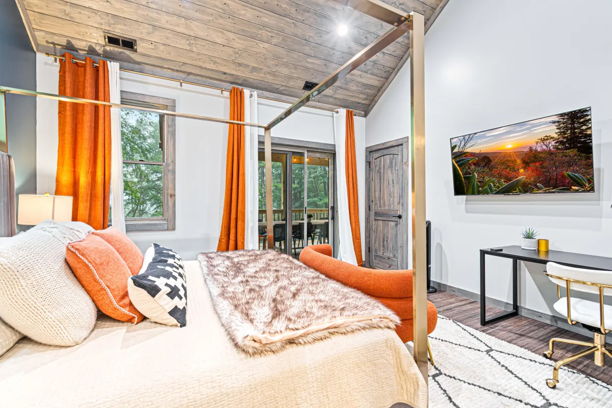 As you step inside, you'll be greeted by a carefully curated interior that seamlessly combines contemporary design elements with classic cabin aesthetics. The result is a cozy yet sophisticated atmosphere that will make you feel right at home