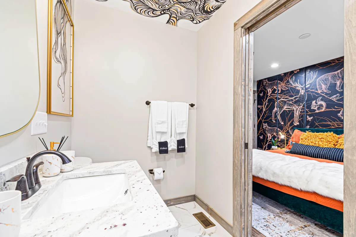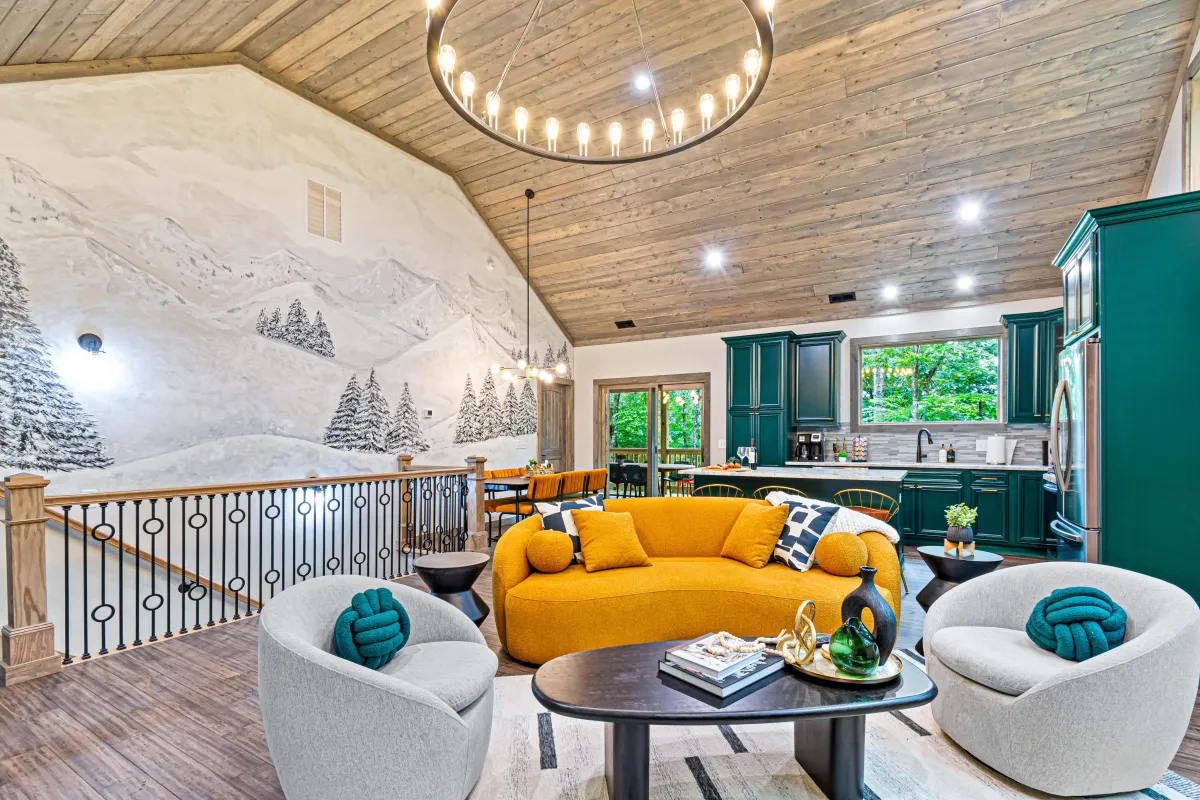 As you step inside, you'll be greeted by a carefully curated interior that seamlessly combines contemporary design elements with classic cabin aesthetics. The result is a cozy yet sophisticated atmosphere that will make you feel right at home